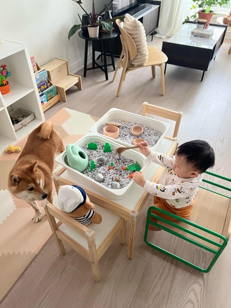One of the best independent play activities I’ve set up for my toddler is a sensory bin rescue game. I used shredded paper from old documents to create a big, fluffy bin and hid small plush animals underneath. Then, I let my child dig through the paper to find and “rescue” the animals in his own way. He absolutely loved it! He spent an hour and a half fully focused on the game, exploring the textures, problem-solving, and using his fine motor skills to search for the hidden animals. It was amazing to see how engaged he was, and I love that this simple setup kept him entertained while also encouraging sensory exploration and creativity.